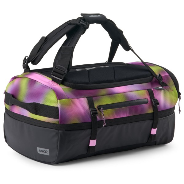 The AEVOR Duffel Pack 60 is your flexible companion for every trip. Thanks to clever compartments such as the zipped front pocket and separate wet clothing compartment, you always have everything you need within easy reach and neatly separated.The mesh inner compartment keeps the main compartment organised, while the expandable volume of approximately 47 to 60 litres and the compression straps allow you to spontaneously pack more or less. Fastening straps on the front provide space for additional equipment, keeping everything neatly stowed away, no matter how much you take with you.