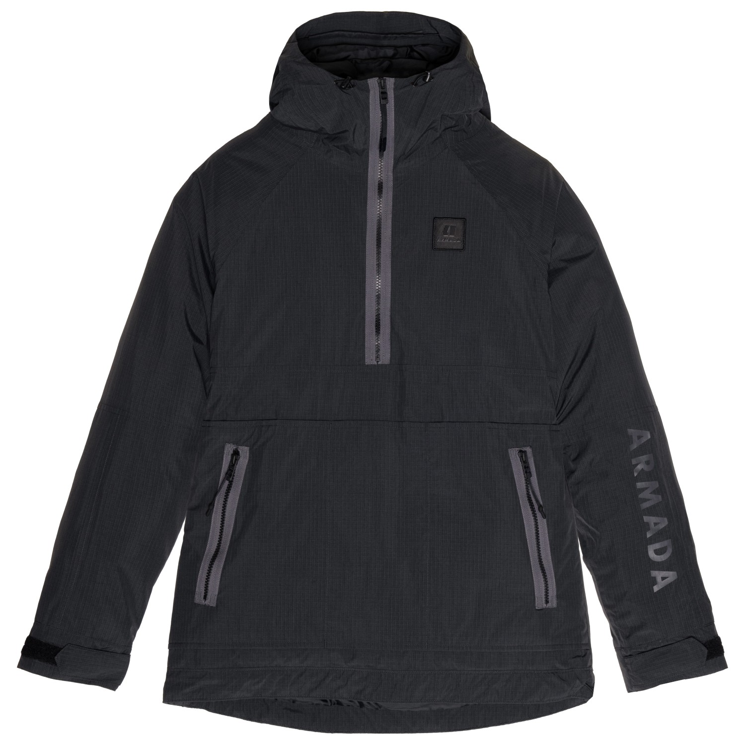 - hook-and-loop fasteners on the sleeves, elastic inner cuffs, logo patch, logo print, raglan sleeves, powder skirt, adjustable hem
