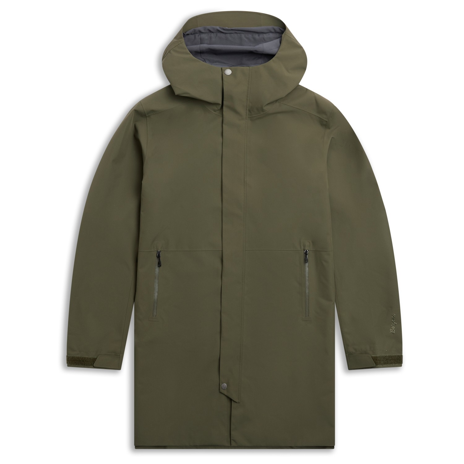 - full length front zip, with storm flap