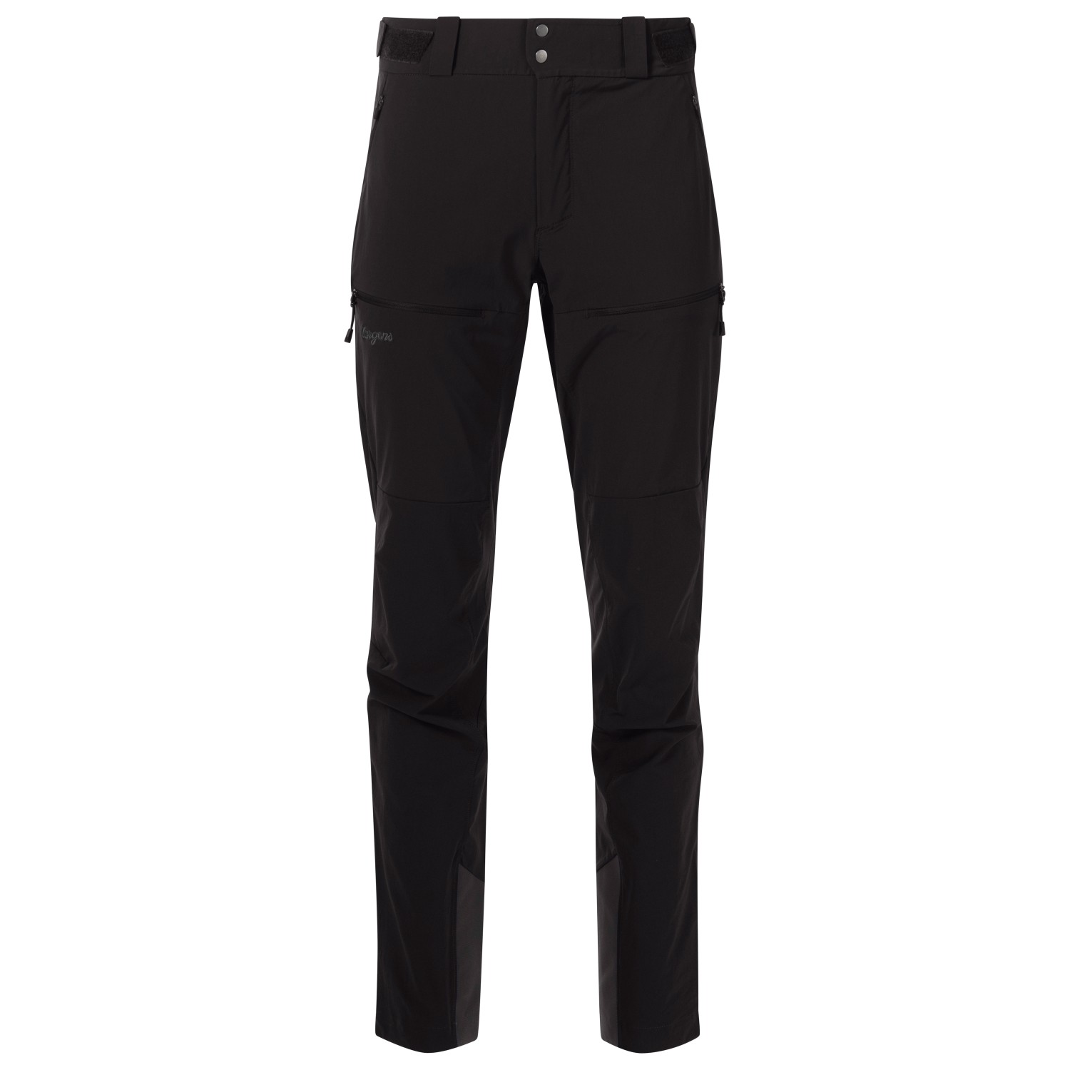- belt loops, zipped leg cuffs, adjustable waistband, articulated knees, gusset insert in the crotch