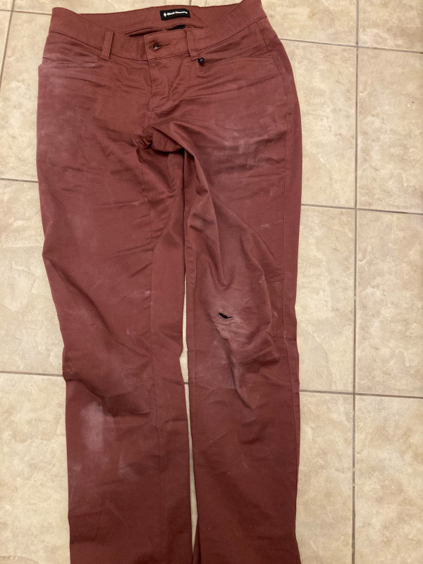 These pants broke at the knee in 15 minutes on a single boulder indoor problem. They scratched so badly, at 4th attempt I stopped to see why my skin hurts, just to see a hole in the pants! These pants's material is a joke! The tag says the pants are for climbing but do yourself a favor and look elsewhere for climbing trousers! If I could, I would give 0 stars.