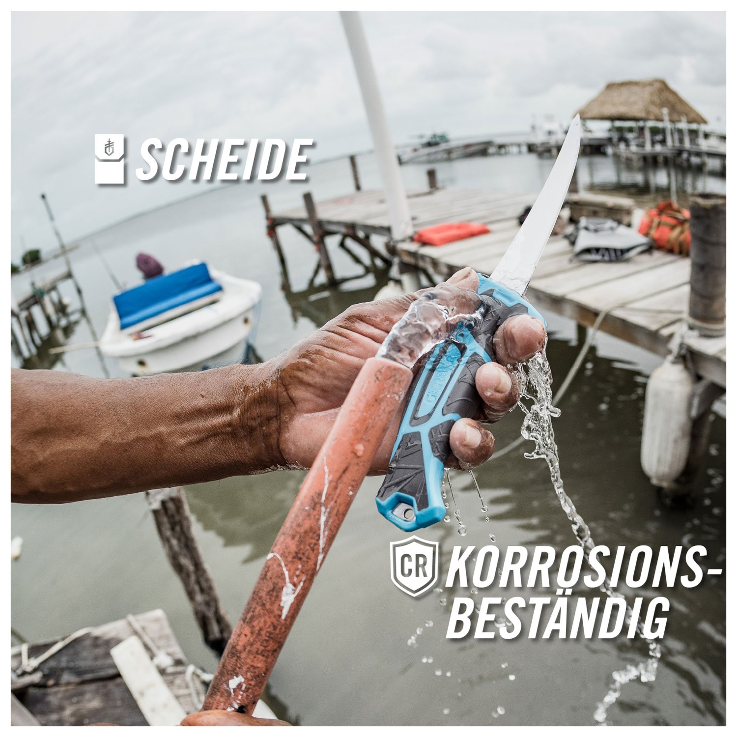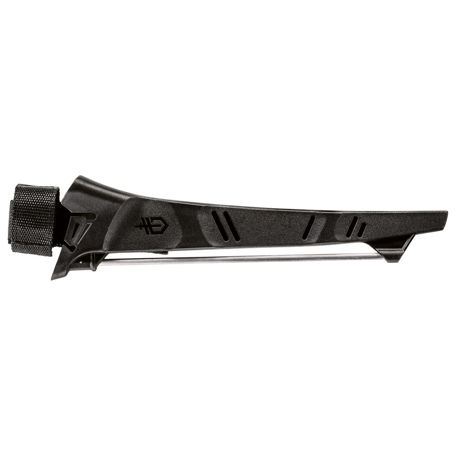- plastic sheath with a knife sharpener, belt clip, belt loop and drain slots