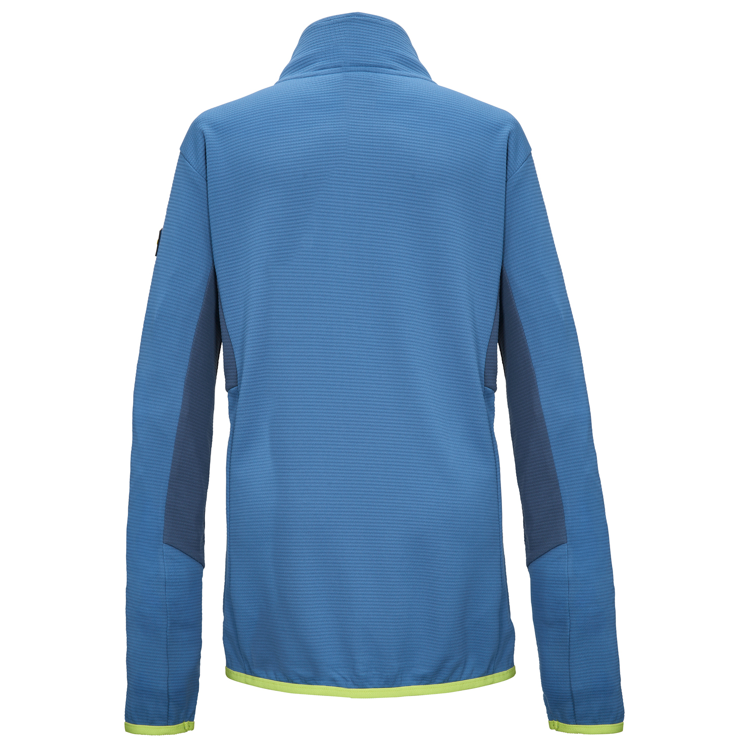 - elastic sleeve cuffs, logo patch, stand up collar, drop back hem