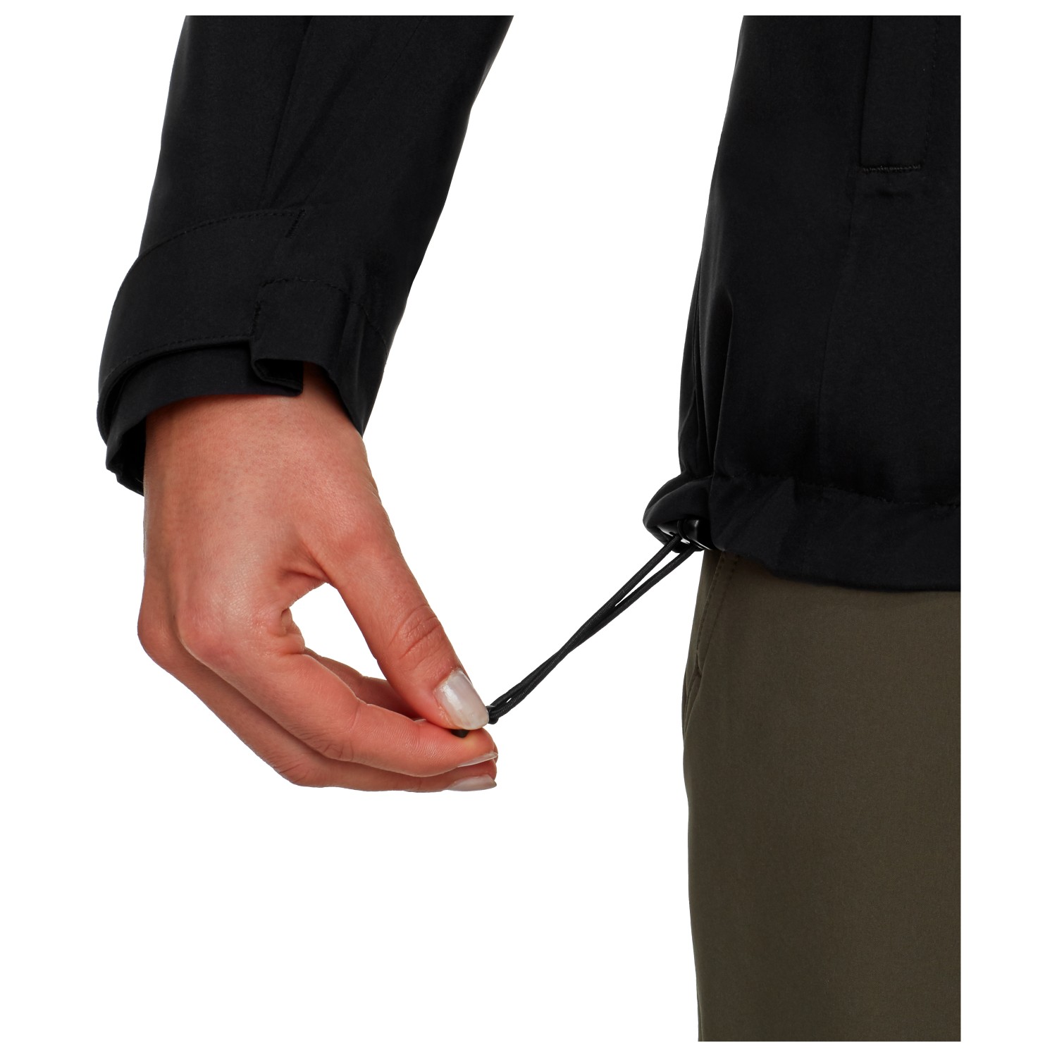 - hook-and-loop fasteners on the sleeves, adjustable hem