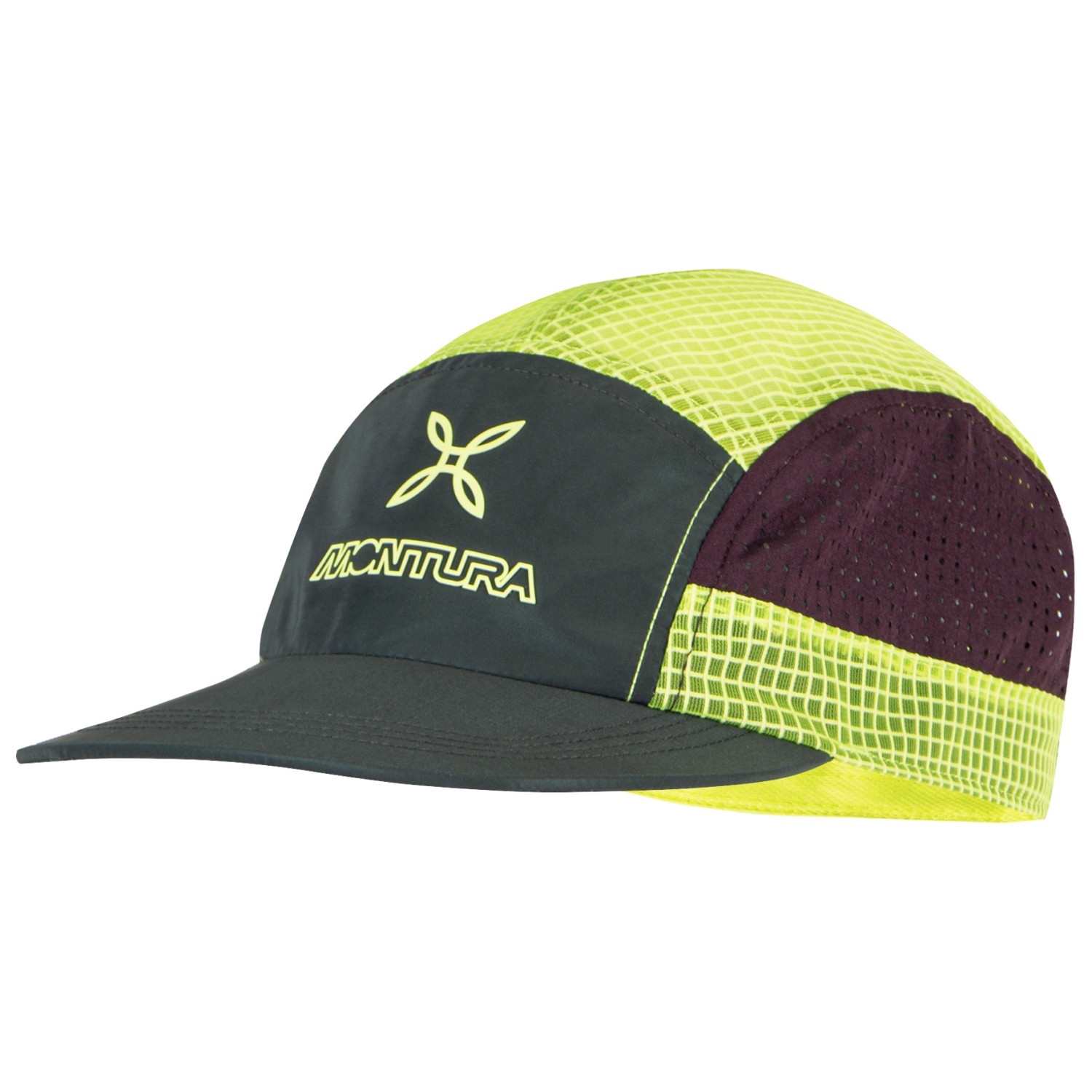 - 5-panel cap, curved brim, mesh cap