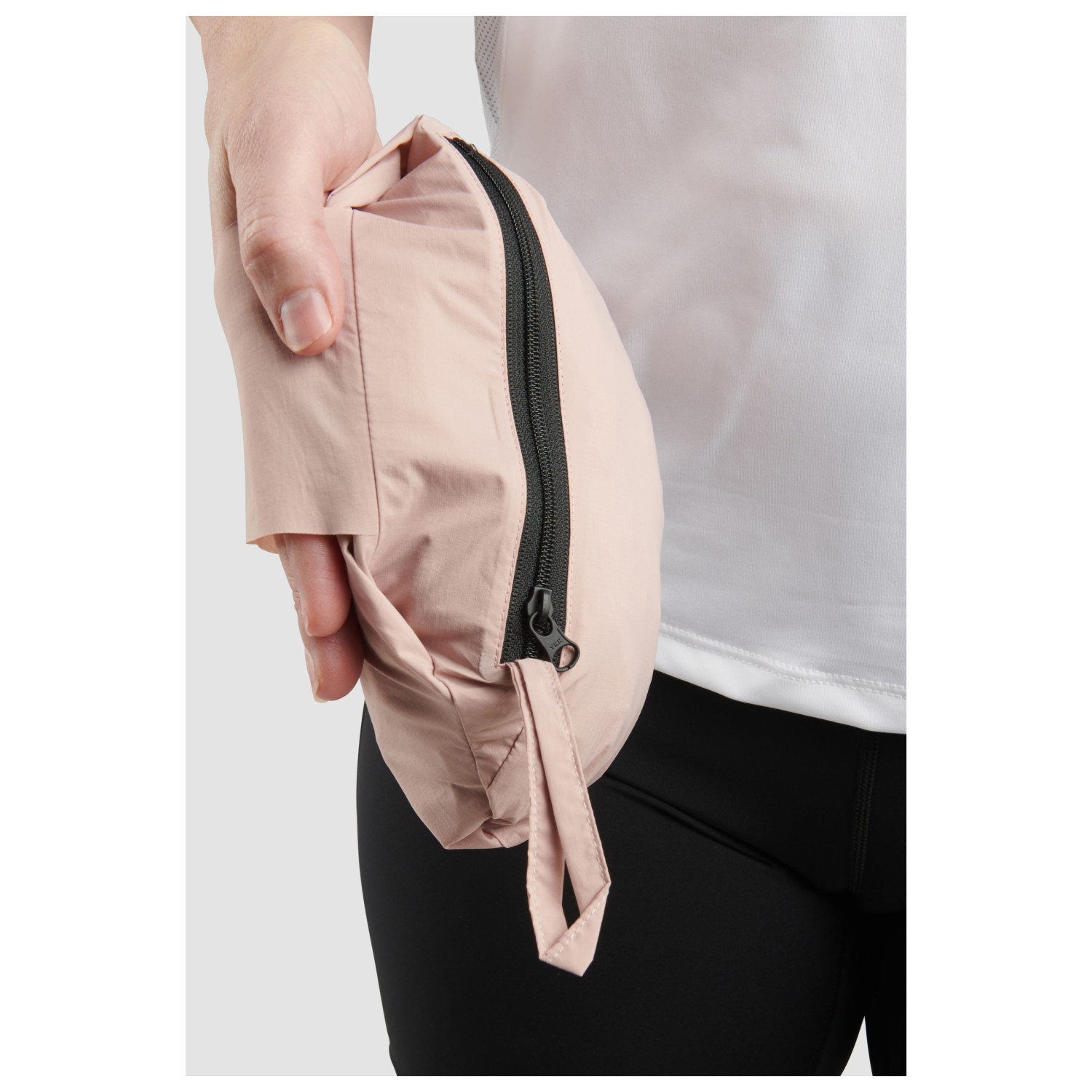 - elastic sleeve cuffs, stowable in its own pocket, reflective details, adjustable hem